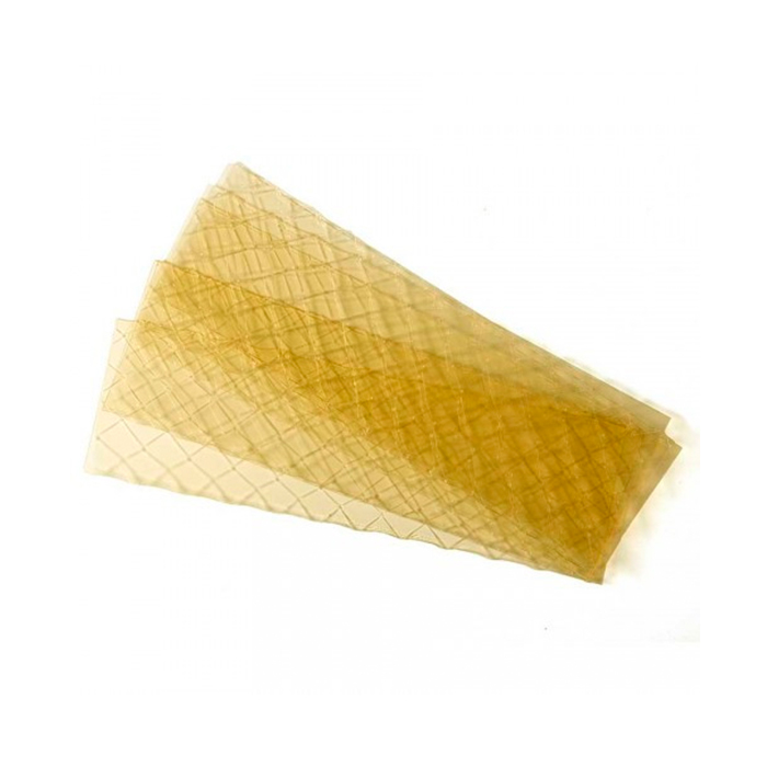 Листовой желатин – прозрачные пластинки желтоватого цвета, без запаха. Сейчас стало очень популярно, собственноручно, в домашних условиях готовить такие лакомства, как муссовые торты и глазури для их покрытия, суфле, конфеты, желейные десерты, машмеллоу и многое другое. Желатин достаточно плотно сгущает массу изделия, придавая ему упругость и стабильность.Желирующая сила - 120 Блюм.